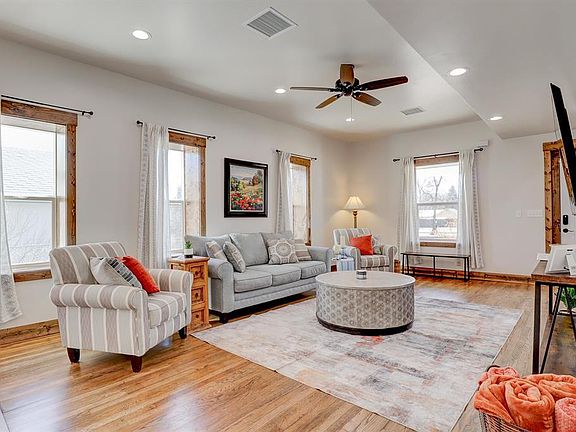 Located in the Historic District of Cortez, on the Charming Montezuma Avenue, this 1908 beauty has been fully remodeled most elegantly and thoughtfully.  This home offers a delightful combination of classic charm and contemporary comfort in a warm and sophisticated setting with 4 bedrooms and 3 bathrooms.  The living room is spacious with preserved original hardwood oak floor, high ceilings and ceiling fan.  The rest of the main level has elegant new vinyl plank flooring guiding you throughout. The dazzling kitchen is perfect for entertaining, with gorgeous granite counters, including a counter bar for casual meals. custom cabinetry, top of the line appliances, an island for functionality, near the dining area which sets the stage for more formal entertaining.  A charming little office nook sits west of the kitchen and just prior to the primary bedroom, which showcases a spacious en suite bathroom with a beautifully tiled shower and private toilet.  The secondary bedroom also enjoys the luxury of an en suite bathroom with a Kohler insulated tub and fine fixtures.  Dual sinks are in both main level bathrooms.  A carpeted staircase leads upstairs to two more bedrooms and a bathroom with a tub, and a frameless lighted vanity mirror. Wood trim, recessed lighting, ceiling fans, central air conditioning and forced air heating, providing comfort in every season, and new windows throughout are some of the modern amenities of this stunning residence.  The location is unbeatable, walking distance to shopping dinning, entertainment, parks, rec center and public library, making it not only a dream home residence but also an excellent investment property, currently successful as an Airbnb.  Every detail of this home has been meticulously curated, and the option to negotiate furnishings adds an extra layer of convenience for potential buyers. Whether you envision this as your forever home or a wise investment, this historic treasure on Montezuma Avenue is ready to embrace you.  Don't miss the opportunity to own a piece of Cortez history, beautifully reimagined for mordern living!