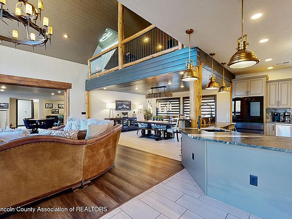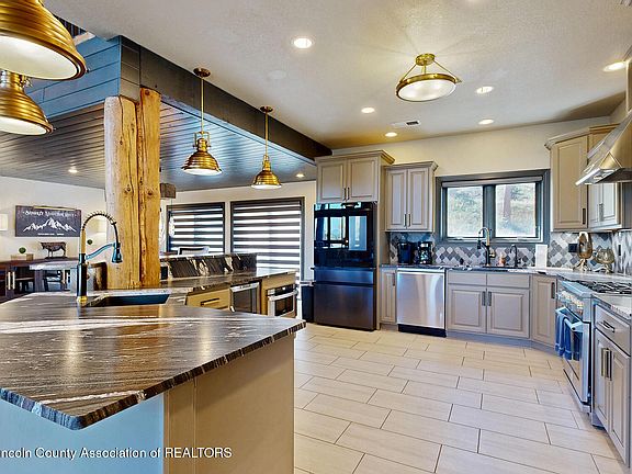 Gorgeous, well-built & uniquely decorated! 6 bdrms, 4 baths, great living rm w/FP, dining, kitchen w/walls of windows, magnificent primary suite w/FP & gorgeous bath, 2nd bdrm & bath on main, game rm. w/poker table converts to bumper pool table w/motorcycle theme bar. Upstairs is fabulous den/theater rm. w/85'' TV, fireplace,theater seating, pool table, foosball table, basketball shot game. 2 bdrms, 2 baths, super fitness exercise rm. w/equipment, wonderful decks w/hot tub, 2nd floor deck w/great firepit & deck furn. Very hard to describe as never seen anything w/such awesome decor & so many fun things to do for your huge family. Is an incredible rental at this time, on seasonal creek & 6 1/2 acres backing to National Forest! Come enjoy all the mountains have to offer & enjoy!!