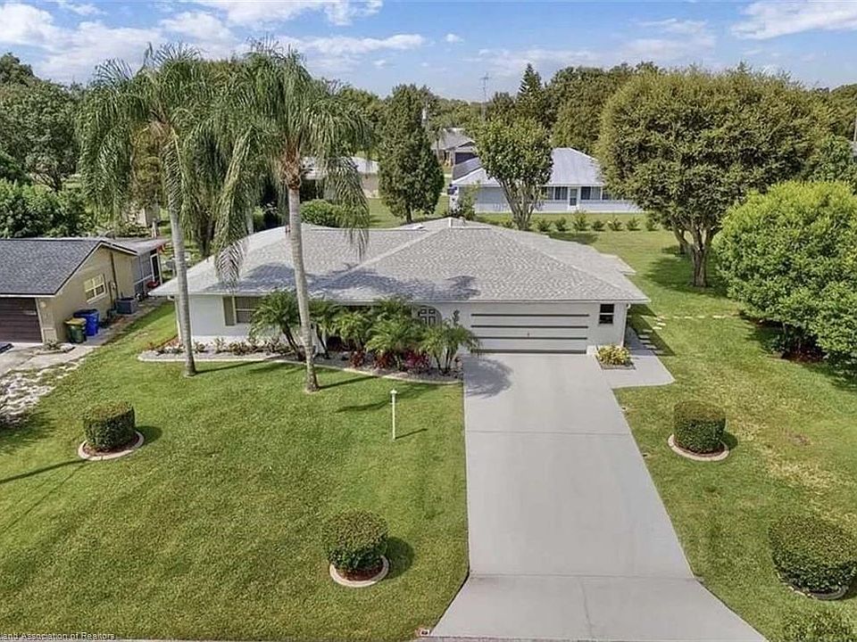 Home is well maintained on two lots (.94 acres) in the Placid Lakes community. Home is within walking distance to the community park on beautiful Lake June with public boat ramp. This home has 3 bedrooms, 3 full bathrooms and a two car garage with tons of storage. Home is equipped with solar panels, (very low utilitiy bill)! There is laminate flooring in the living and family room with carpet in the bedrooms. Spacious galley kitchen is equipped with lots of cabinetry, laundry room is located right off the kitchen which has additional storage for pantry and other items. There is also an enclosed air conditioned bonus room off the kitchen that leads to the fenced in back yard. There is an awesome detached CBS, 600 SQ FT storage/workshop building with additional storage for your RV or Boat. New roof in 2018, new air conditioner in 2022 and new water heater in 2020. Come see this beautiful home today!