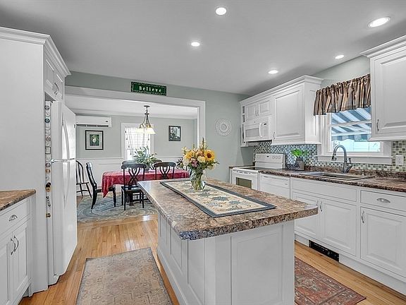 Offer cutoff Monday, 6/3 at 5:00 p.m. with a response Tuesday, 6/4 at 12:00 p.m. Unique opportunity to own a versatile property that can be used as a single-family home or as an in-law/multi-family residence. The main side features 6 rooms, including a living room, dining room with a mini split, a modern kitchen with an island and pantry, 3 bedrooms, 1 ½ baths, and laundry. The secondary side includes a cozy family room with a pellet stove, a four-season sunroom with a mini split overlooking the beautiful backyard, a kitchen, a bedroom, and a full bathroom, providing perfect generational privacy. With 2079 +/- square feet of living space on a well-maintained lot, this home offers wainscoting, wood flooring, oak stair treads, and crown molding. Enjoy the landscaped, fenced-in backyard with numerous plantings and an oversized deck, ideal for outdoor gatherings. Essential updates include a furnace, hot water tank, oil tank, electric, and 3 mini splits all approximately 10 years old.