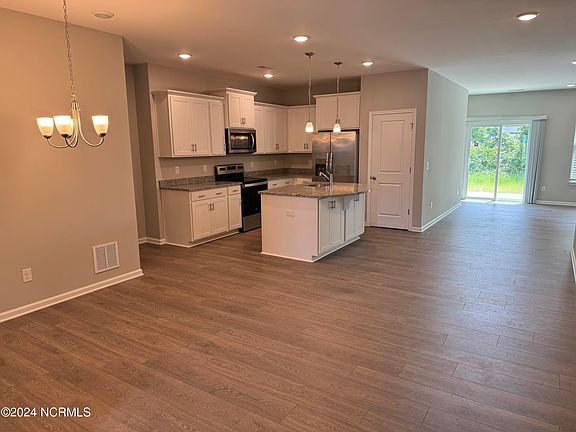 Seller is offering a $5,000 credit at closing for Buyer to use towards closing costs or a rate buy down. This one level home backing up to a row of mature trees offers great privacy and so much more. The kitchen has granite countertops, stainless steel appliances, a pantry and a custom island. There is a large dining area adjacent to the kitchen. The awesome floorplan offers a semi open living room with ample natural light, but still provides ample wall space for all of your decor. The primary bedroom is oversized and features two separate large closets, two sinks in the vanity and a nice shower. The two guest bedrooms and guest bath are on the opposite side of the house so everyone has privacy. There is a spacious laundry room that leads to the two car garage. There is also room to park two cars in the driveway. The patio in the back is large enough for a table and grill. Fences are allowed in the neighborhood. Lighthouse Cove has low HOA fees ($300/year). You are 12-13 minutes from Sunset Beach and less than 5 minutes to the Calabash riverfront, where all of the restaurants are located! This home is not located in the flood zone. Come check this one before it's gone!