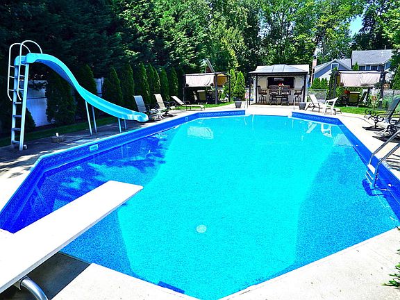 Enchanting 4 bedroom, 3x bath home has it all! FULL FINISHED BASEMENT. Fully fenced in backyard with IN-GROUND POOL featuring a slide, diving board, extensive patio space & landscaping with POOL CABANA HOUSE including service BAR & Kitchenette! The OPEN LAYOUT is IDEAL for ENTERTAINING! Sunken Living room with great NATURAL LIGHTING, Family room with FIREPLACE, Formal Dining Room, convenient mudroom with Laundry and AN ABSOLUTE SHOW STOPPING 400 sqft CUSTOM NEW KITCHEN boasting granite counter tops, stainless steel appliances, formal sitting area as well as bar stools on oversized center island & so much more. FANTASTIC DEAL; do not wait! You will LOVE LIVING HERE!