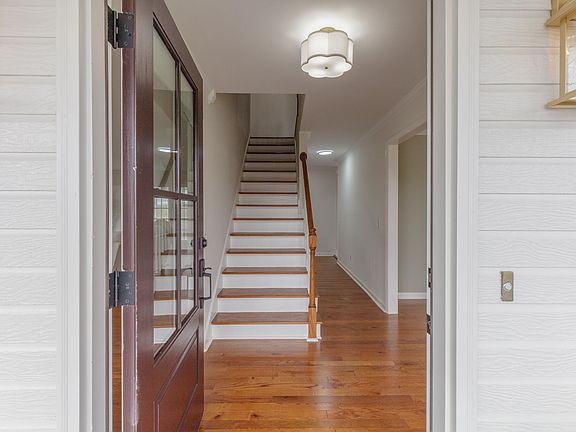 Every inch of this home has been thoughtfully updated to make it perfect for both entertaining and everyday living. Walk up the front steps to the large wrap-around porch and enter through the front door, where you'll be greeted by a spacious, light-filled foyer with beautiful hardwood floors. From here, the rest of the house is easily accessible. To the left is a large living room with a stone fireplace. To the right is the dining room that seamlessly flows into the kitchen. The newly renovated kitchen boasts sleek quartz countertops, herringbone tile, brand-new stainless steel appliances, and ample cabinetry.