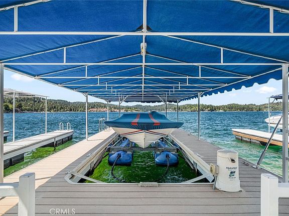 Wow, this is one of the best Lakefront, lake view homes in Lake Arrowhead. Walk straight into this level entry 5 bedroom,5 Bath custom home and get blown away by the lake view and overall orientation to lakefront living. The family area and primary suite features custom coffered ceilings, and expansive west facing views. The home is immaculate, the exterior has a new roof, new exterior paint and the detail to the construction of the brand new deck is impressive. The access to the dock couldn't be more perfect, nice easy path detailed in used brick fronts the property and takes you to your private lakeside patio with Single Slip Dock. The Dock amenities include, a hydro hoist under a nautical canopy, side tie for guest and additional rear tie up, currently used for a Boston Whaler for easy convenient transportation to Restaurants, Bars, Loan Pine Island, Marina, and other Lake features. The Dock and Patio also include, a Dock House for all your sporting goods, exterior furnishings, and service area with refrigeration for beautiful afternoon entertainment for the entire family. This property is ready to enjoy. This property is viewed by appointment only.