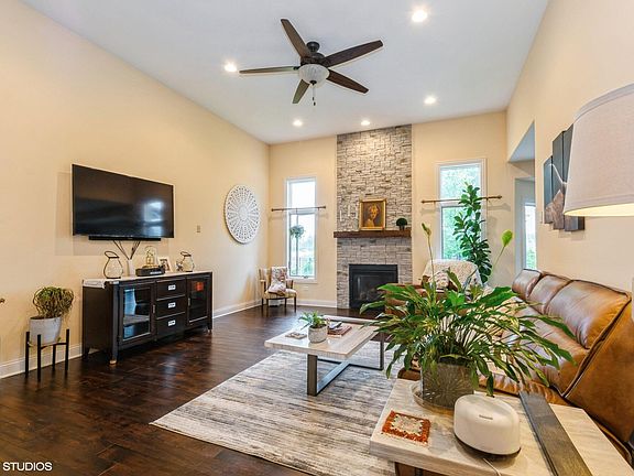 Newer All Brick Open Concept Ranch home offers over 2400 sf with 3 Bedrooms, 3 Baths, Hardwood Floors, Great Room with Stone Fireplace, Formal Dining Room with newer custom shelving, split design floor plan, 3 car Garage, Plus Full Unfinished basement has Rough in for future bath and offers 2 egress windows. Tree lined Back, Newer Fenced yard! Home features Large kitchen with gorgeous granite counters, large breakfast bar, Stainless Steel appliances, abundance of cabinet space, Pantry, and Spacious eating area. Amazing Great Room. The split design with the Primary Suite on one side of the home with a huge walk in closet, bath and newer shower door. The other two bedrooms are located on opposite side of home with bath, granite & double vanity. Main floor Laundry Room off garage with Newer washer and dryer. Concrete Back Patio. Newer Front Storm doors. No HOA. 13 Month HWA Home Warranty offered. Munster Schools! Lake Michigan Water! Low Taxes!