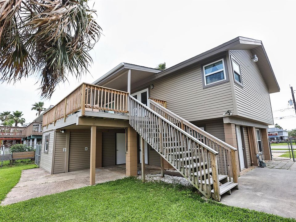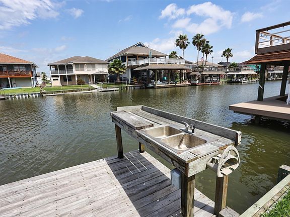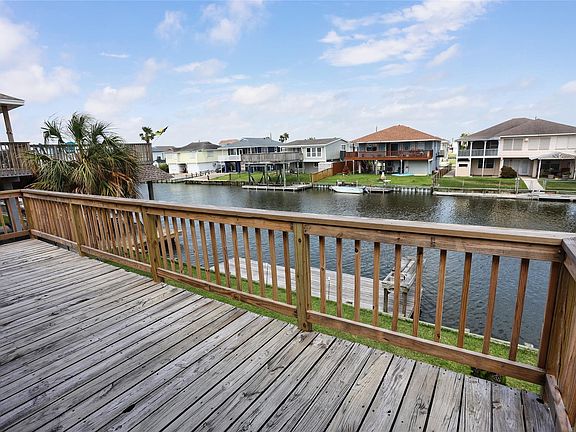 Fantastic waterfront home on a desired canal of Bayou Vista. ENJOY the outdoors with your large second floor deck or FISH or BOAT right from your dock. Downstairs is a whole living area, a bedroom, full bathroom, partial kitchen with a refrigerator, and storage room. Second floor has a well appointed primary bedroom and full bathroom with another bedroom. Spacious family room and recently remodeled kitchen with a huge deck for enjoying the outdoors. Sunset views on the canal with a dock and fish station, perfect place to watch the July 4th fireworks! The Galveston Strand and beaches are just minutes away. If boating is what you are looking for, this home puts you in the bay within minutes, and there is a boat ramp close by! Bayou Vista is a wonderful golf cart community with two restaurants in front of the neighborhood along with two convenience stores and a gas station. Must see and move in ready!