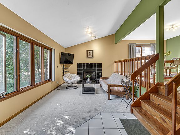 Cozy wood-burning fireplaceLarge balconyFinished basementGood size bedroomsPrivate patioWet barCathedral ceiling