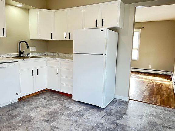 Newly updated throughout. Animal friendly 3 bedroom, 1 bathroom. Private entrance and private single bay, partially heated garage. Kitchen includes dishwasher, fridge, range, and garbage disposal. Hard floors throughout. Washer and Dryer hookups in common laundry room that accommodates full sized machines. Water, Sewer, Garbage, and Boiler Heat included. Electric/Internet/Cable is the responsibility of the tenant. Lawn care and snow removal done by landlord. No smoking on the property.