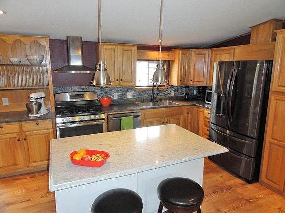 PERFECT ON PINE RIDGE LANE. Well maintained and updated 2004 Marshfield home is a split ranch design 3BR-2BA with master suite and wonderful open concept design. The kitchen/dining has wood laminate floors, abundant cabinetry, pantry, large quartz topped island with soft close drawers and doors. All appliances included: self-cleaning gas range (5 yr), pewter LG French door fridge (2 yr), super quiet LG dishwasher (1 yr). Patio doors from dining area to 12x16 rear deck with additional 8x16 deck off rear of finished attached 18x22 garage with keyless entry plus a 6x16 covered front porch. Main floor laundry room with stackable washer/dryer (3 yr). Textured walls, 6-panel solid wood doors, full poured concrete basement partially finished with two large rooms, electric fireplace and a large half bath. Vinyl siding, shingle roof (2013-skylights removed at that time), 8x10 garden shed. Nat gas/cable. Ideal location, quiet dead-end road but near city hub for convenience!
