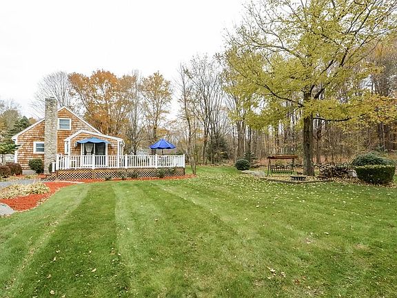 ***STORYBOOK CAPE w/tremendous curb appeal set on gorgeous acre plus bucolic lot with natural stone walls and great privacy!* Wood shingled exterior, stained about 2 yrs ago, w/striking exterior stone fireplace ...plenty of space to add garage or additional living space*1st floor welcomes you into terrific open floor plan w/great room, gas log fireplace and lots of natural light! *kitchen offers wood cabinetry & tiled dining room/ sunroom directly adjacent, w/sliders to fabulous oversized deck! 2 BRs and full bath complete the first floor. Recently constructed second level w/wood staircase, offers many options...massive master BR /game room!?! Limited only by your lifestyle! PLUS additional room used as home office! Full unfinished LL w/laundry provides wonderful storage!*AC!!!*Amazing entertainment sized yard & deck w/huge shed for equipment storage or playhouse *Lot is bordered by original stone walls & is even larger than at first glance!!***