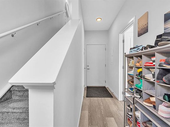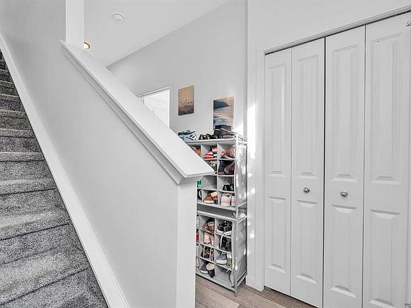 South-facing end-unit townhouseDouble attached garageBright open-concept main floorStainless steel appliancesPrivate covered balconySpacious primary bedroomWalk-in closet