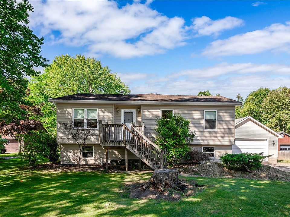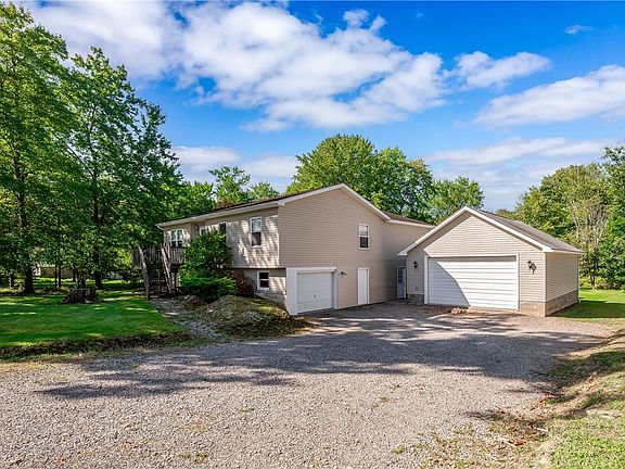 Large ranch style home new to the market situated on a 1 acre lot. This 3 bedroom 3 full bath home has a finished basement, tons of finished square footage, and a possible 4th bedroom in the walk out basement. Large primary bedroom with walk in closet and an en-suite bathroom. Laundry is located on the main level. The eat in kitchen has plenty of storage space and features SS appliances. Rest and relax on the rear deck which over looks the large yard, storage shed, and above ground pool. 1 stall integral garage(could be turned back into 2) and a large 2 stall detached garage.