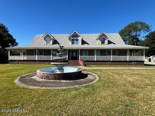 Large backyardFountain in front yardSituated on large lotWraparound porchDetached carportStorage building in rearSpacious bedrooms