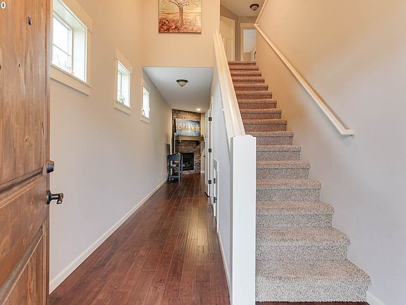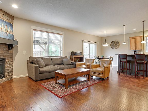 Modern Craftsman home on a huge corner lot. Hardwood floors & open floor plan. Spacious kitchen/dining room w/ granite counters, SS appliances, pantry, & island w/ eating bar. Large living room w/ fireplace. Vaulted master suite & 3 more spacious bedrooms, storage & laundry area. Partial view of Mt. Hood, a fenced-in & landscaped yard w/ sprinkler system. Conveniently located close to shopping, restaurants, great schools, parks & more! Barstools & all appliances included. Open Sat & Sun 1-4pm.
