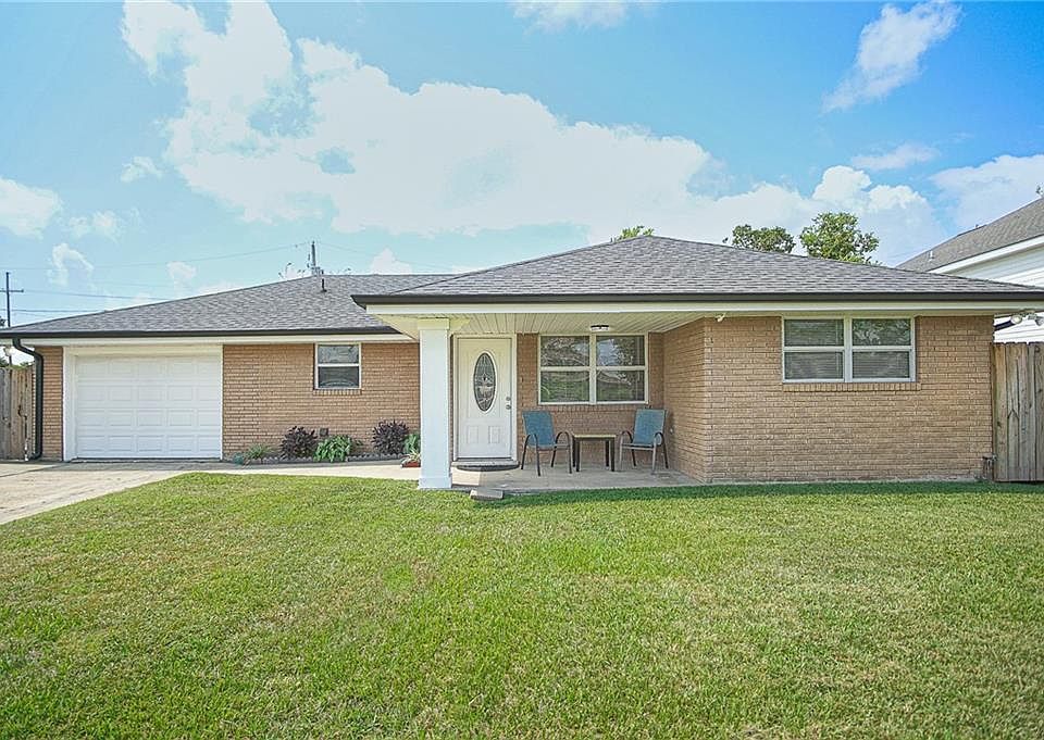 3 bed / 2.5 bath just minutes away from New Orleans! 2 Year Old Roof, Fenced Yard, Covered Patio, Sunroom with Screened Windows, Garage w/ attached Half-Bath and Storage Room, Primary Bedroom with en suite bath, Separate Living Room & Dining Room, Front Porch with Landscaping, Large Utility Room w/ Sink, Off-Street Parking, Newer Appliances & Water Heater.