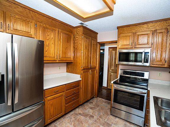 Two level home on .64 ac lot offers privacy with friendly and supportive neighbors in a highly rated school district and an esteemed and caring community. A Low Maintenance showcases a modest facade of soft buttercream vinyl siding with classic white trimmed gableand insulated windows installed in 2018. Welcomed thru a solid wood w/oval leaded glass window into a warmly decorated family home with hardwood floors, large closets and classic comfort design. Large galley kitchen filled with newer SS appliances; Stove/oven 2018, Microwave 2018, Smart Refrigerator 2022, Dishwasher 2024, Disposal 2024 opens to Brkfst nook with 3 windows allowing sunshine to fill the room. Laundry is conveniently nestled btween garage and Kit for quick stinky clothes dropoff. Proceed from Kit into a well appointed Dining Rm filled w/Natural light & perfect for Family Thanksgiving meals. The adjacent Den with Cathedral ceiling and stone gas Fireplace is warmed by the lght from the two french doors that lead out to the 16 x 20 deck built in 2020. Look out onto the fenced back yard and 24x24 Det Garage w/elec filled with possibilities for workshop projects or 2nd income opportunities. Back into to see the wide halls leading to an oversized Main Bdr boasting large WI/closet, separate Dressing room w/sink & oversize vanity, plus a 3 piece bath w/vanity, sink, tub/shower and water closet. Add two childrens BDR with warm colors and double sized closet. Now lets go down the steps and see the "Surprise" Rec Room 27x23 with room for Children and Adult Play areas. Add to this two large BDR/one with Double French Doors could use as a business office with outside entrance. Add a full 3 piece bath and two Storage Rooms one with W/D hook up to these interesting spaces and we have a Wonderful Home for a Large Family, a spacious home for a Multi-Generation Family or could be upgraded with a kitchenette to use as a separate rental unit. Wow, what a special future homeplace.