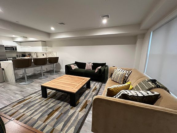 This stunning, newly built 2-bed, 2-bath apartment offers 1,400 sq. ft. of luxury living with high-end finishes and modern amenities. Fully furnished with stylish decor, it features a gourmet kitchen equipped with premium appliances, cookware, and a Nespresso machine. Enjoy year-round comfort with climate control and the convenience of an in-unit washer/dryer. Smart displays provide intercom access for front and back doors. Elegant laminated flooring runs through the living spaces, while the bathrooms boast sleek tile and fresh towels. Garage parking available for $150/month. Pet-friendly for cats (max 2), but no dogs. No smoking on the property.All applicants must complete an application before scheduling a showing.