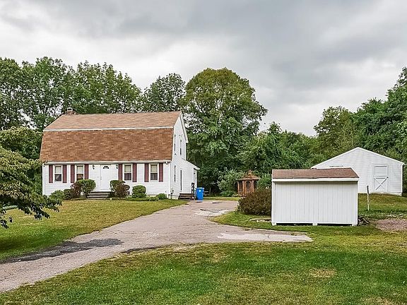 Beautiful mature plantings and 25 by 35' barn complement this well maintained Gambrel in West Wrentham "horse country." Eat-in kitchen with walk out bay and pantry area--lots of storage space--formal dining room, front to back great room with brick hearth walk out bay and Harmon pellet stove and a half bath/laundry area. Upstairs offers large front to back master with double closets and ceiling fans, two nice sized bedrooms and a full bath. Basement is partially finished with a pool room/ bar area with natural light and a small office. New roof and vinyl siding installed in 2004. Energy efficient vinyl tilt windows throughout; front door replaced in 2015. Outside features include a large shed, a water garden, decks, and a gazebo. Plenty of parking, storage and privacy. This family home has been lovingly maintained and improved by its present owners, who are retiring to Florida and hope that a young family will move in and create their own memories!