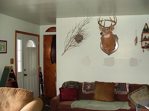 Overlook the Mountains as the Seasons Change from this 3 Bdrm 1 Bath home on an abundant 6.81 acre lot with a view of Whiteface Mountain and aspects of the Sentinel Range. The Kitchen, Living, and Dining area are open and combined space warmed by a gas fireplace fashioning an inviting and friendly atmosphere. The basement is full walkout, has a 12 x 12 den or office space, and volumes of extra room should someone want to expand. A spacious 10 x 56 deck runs along the front overlooking an above ground swimming pool and attractive seasonal perennial flower beds.