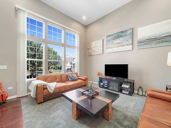 Stunning townhome in Easton Park with designer style & finishes. This modern 2 bed & 2.5 bath home features an open floor plan, 2-story living room with extra large windows and ample natural light. The eat-in kitchen includes granite counters, SS appliances, and an island that blends perfectly into both the family room and dining room. Step out to your private balcony and enjoy the views. The main level is completed by hardwood flooring throughout, a powder room, and spacious laundry room with ample storage space. The large master bedroom has a walk-in closet, full bathroom with double sinks, separate shower and soaking tub. The second en-suite bedroom also has a great full bathroom and long walk-in closet. Attached 2.5 car garage with large concrete crawl space that can be used as storage, plus driveway for additional parking. Built in 2014, this home is maintenance free and move in ready! Excellent Carol Stream school district and perfect location within close proximity to shopping, expressways, and all that Carol Stream has to offer. Watch the drone video tour!