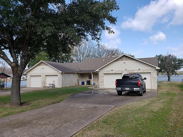GB-8413. IMPRESSIVE LAKE HOME BOASTING WIDE OPEN WATER VIEWS WITH OVER 200 FEET OF SHORELINE! THIS 3 BED, 3.5 BATH HOME FEATURES AN OPEN CONCEPT DESIGN WITH WBFP, SPACIOUS UTILITY AREA IDEAL FOR STORAGE, BOAT DOCK WITH LIFT AND AMPLE PARKING WITH 4 CAR GARAGE. IDEALLY SITUATED ON A SPACIOUS LOT AT END OF CUL-DE-SAC. DON'T MISS THIS ONE!