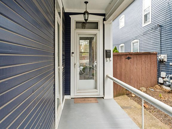 The outdoor space is ideal for city living—relax on the covered front porch or host in the private, fenced backyard with a paver patio, fire pit, and oversized one-car garage.