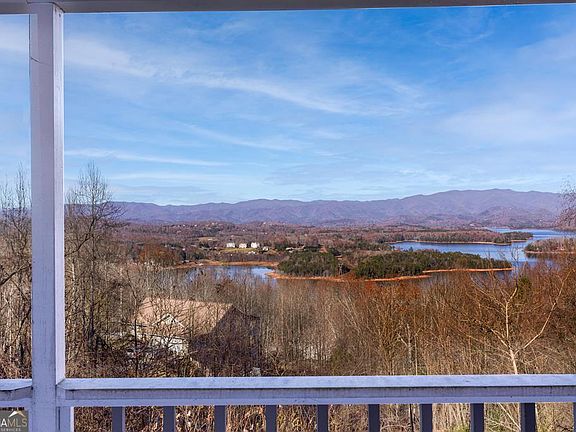 Welcome to a haven of single-level comfort with breathtaking lake and mountain views! Located in the well-loved Lake Forest Estates, this delightful 2-bedroom, 2-bathroom home is designed with two master suites, perfectly merging comfort with nature. The open concept floor plan magnificently frames the spectacular North Georgia scenery through expansive sliding glass doors. Ideal for a vacation retreat, each bedroom offers a private en suite bathroom and mesmerizing vistas. The great room invites you in with its warm wood floors, soaring vaulted ceiling, and a charming rustic stone wood-burning fireplace-an ideal spot to snuggle up, whether you're celebrating the New Year or unwinding after an adventurous day on Ramey Mountain. Step outside onto the back deck, which offers both open-air and covered spaces, to soak in the tranquil views of Lake Chatuge. Whether you're savoring sunsets, marveling at dawn's colors, watching hummingbirds flit by, or enjoying local fireworks on the Fourth of July, this deck offers a perfect retreat. The home also boasts a convenient 2-car garage. Despite its serene mountain setting, residents enjoy easy access to recreational spots, dining establishments, festivals, the Georgia Mountain Fair, and a multitude of outdoor activities. Discover the essence of North Georgia living in this extraordinary mountain escape!