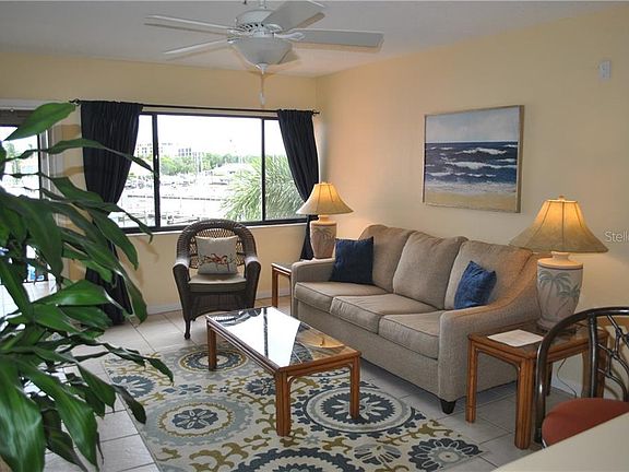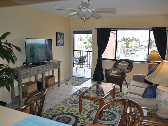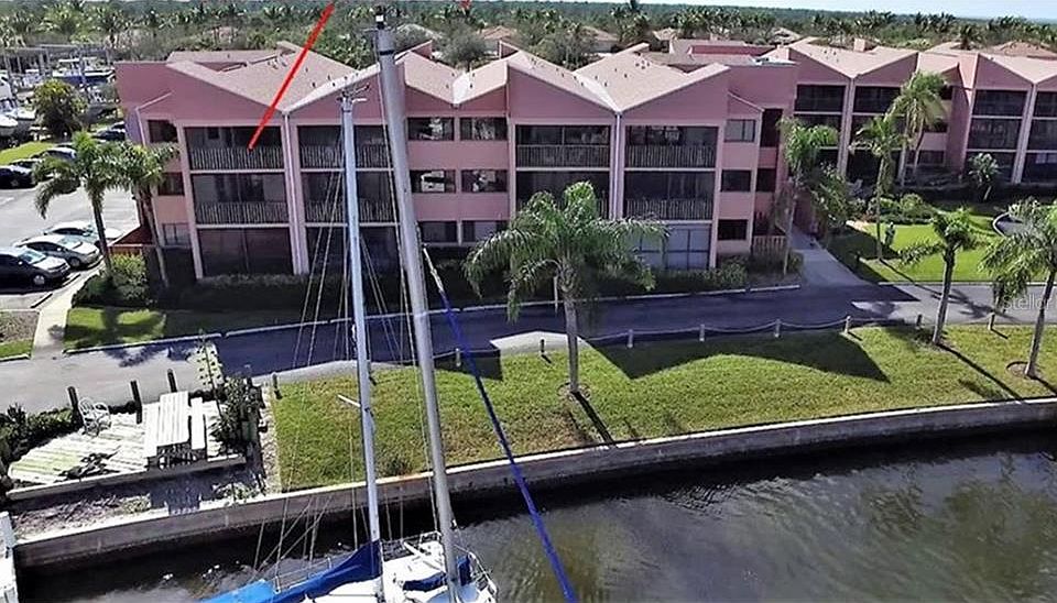 This is a Keel Club Condominium top floor waterfront unit with Marina views in the South Basin of Burnt Store Marina. It is located on the water just steps from the docks and Cass Cay Restaurant and Bar. Fully furnished, it is a turn-key one bedroom, one bath suite that has been actively marketed on VRBO for seasonal rentals for the last two years. As an owner's vacation condo, it couldn't be better located to take advantage of all of the activities offered in the community. As an investment property it has been in high demand, fully booked between December and April daily, weekly or monthly It has a 5-star VRBO rating which makes it a great investment because of the high demand for rentals in the Marina. It is meticulously maintained and tastefully decorated with an enclosed lanai that can be accessed from the living room and the master bedroom. The Keel Club residents and guests enjoy a resort lifestyle with their own heated pool, access to a 525-boat slip marina, a 27-hole executive golf course, lighted tennis courts, pickle-ball courts, state-of-the-art fitness center. The Safe Harbor Burnt Store Marina provides an excellent boating and fishing location with access to Charlotte Harbor and only 10 miles to the Gulf of Mexico.. It is centrally located between Sarasota and Fort Myers. The Punta Gorda Airport is 20 minutes away and the Fort Myers International is only 45 minutes south. A full rental history and pay-out report is available. Take advantage of this opportunity today.