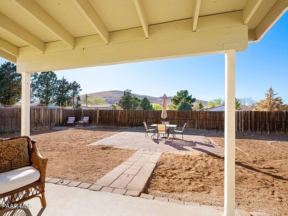 Enjoy great views of Glassford Hill from your backyard! Relax while sitting on your slate rock patio behind the white picket fence with colorful rose bushes all adding to the adorable curb appeal. This cute as a button single family home with 3 bedrooms, 2 bathrooms & single car garage is located in the heart of Prescott Valley. The large fenced in yard is an open canvas ready for outdoor entertainment with a large swing gate for RV & additional parking. The home has been freshly painted interior & exterior. Owner added ceiling lights in the dining room, kitchen & hallways. You'll be pleasantly surprised with the quaint decor inside. It's central location is walking distance to schools, parks, grocery stores, restaurants & entertainment. It's move-in ready, schedule a tour today.