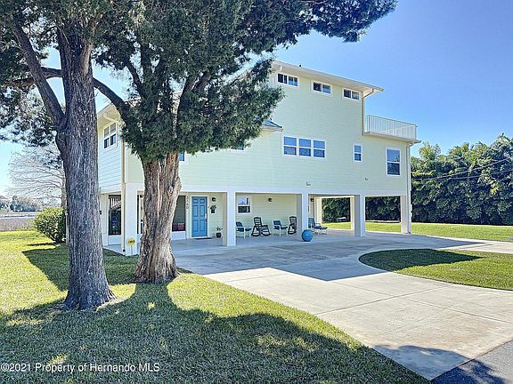 Direct GULF access 4/3 home with dock on the Gulf of Mexico in Aripeka/Hernando Beach area. Sunsets at this home cannot be missed! This home features an expansive third floor master suite (17 x 25) complete with fireplace and 15 x 25 exterior viewing deck. The in house elevator stops on all floors making it an easy trip up or down. The main level features a gorgeous kitchen with a gas range and breakfast bar, wood cabinets, a dining room and 3 more bedrooms which could also be used as offices or workout rooms. The ground level has a screened porch and carport area as well as a large backyard (property features 1 1/2 lots) where a pool could be built. The attention to detail in the home is notable-6'' baseboards, 3'' beveled window casings and wood like blinds throughout the home. There is also a 12 x 20 workshop area on the ground level with a sink. The home features Central Vacuum and the windows are rated to 180mph hurricane impact resistant. The home is well insulated with the average electric bill about $175. The exterior of the home is clad in Hardi-board and there is a split mini A/C in the master which also has central AC. All exterior decking was completed in a ''Trex-like'' material so no wood to maintain. There is instant propane for the gas range, fireplaces and water heater. This home has a survey, elevation and all plans from the total renovation completed in 2008. You must see this paradise on the Gulf of Mexico-privacy to enjoy nature, amazing Gulf sunsets and space to enjoy your life with 110'' of seawall and nearly 1/2 acre of land.