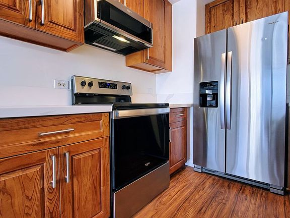 This condo feature stainless steel appliances which includes, a flat range/oven, a slim microwave range hood, a double door fridge, dishwasher and vinyl plank flooring throughout.