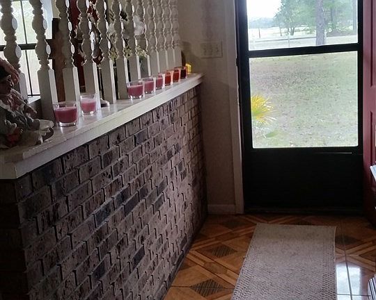 Enjoy a peaceful brick home not far from town. Spacious yard with an inviting above ground swimming pool. Split floor plan with a nice utility room opening to 2 car garage. Relax in a large living room with unique tile and wood burning fireplace. Potential to make it your own!