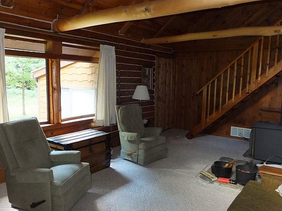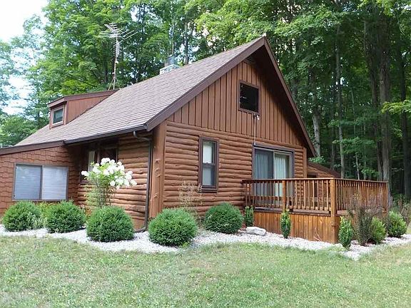 A winding drive to this perfect private country setting. Full log home on 15 acres. Well maintained & ready to move into with furnishings & appliances included. Property is mostly wooded with a nice open area for gardening or livestock. Also an oversized 2 car garage & additional 1.5 car garage for all the toys. 3 Season sunroom and large back deck. State land on 2 sides. Near Crystal Mtn for golf & skiing & the Betsie River for fishing & kayaking. Call for appt.