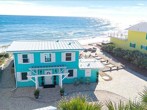 DIRECT OCEAN FRONT! Gorgeously remodeled beachfront home, as seen on HGTV Beachfront Bargain Hunt Restoration. The pictures will excite you, and they speak for themselves. If you are looking for a place to heal your body and soul this is the place for you! THIS IS A NO PET RENTAL DUE TO OWNER ALLERGIES. This enchanting oceanfront hide-away welcomes you to unplug, relax and de-stress! Panoramic ocean views from the living room beckon you to take in this slice of paradise. The eight-foot sliding glass doors lead to a private expansive paved beachfront patio. The large plantation shutters provide privacy and give the home that island touch! Wake up to breathtaking sunrise views over the Atlantic from your master suite. Breathe in the clean salty ocean air while enjoying coffee on the porch as you listen to the sounds of the surf and watch the dolphins play! This gem of a home is well protected with a sea wall. Wind down your day under the starry skies and balmy breezes by your wood burning fire pit. For your entertainment, fun oceanfront restaurants and establishments are just minutes away. Sidewalk and bike path from county line to county line in place for bike riding or walking on A1A. Being directly on the Atlantic Ocean, there no streets to cross and nothing between you and the cinnamon sands of Flagler Beach except a few steps! This home sleeps 6 with a glorious Master Bedroom on the upper-level, opening to the Ocean view, a guest room on the lower level and 2 bunks tucked away on the lower level as well. This light and bright home is completely furnished in a charming beachside designer style. This is a hypoallergenic home NO PETS, NO SMOKING ANYWHERE ON PREMISES.