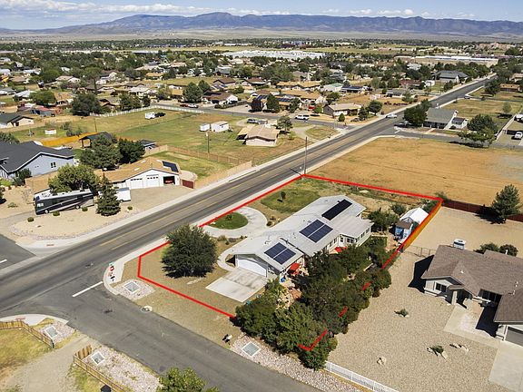 Highly Updated 2210 Sq Ft Home on (1/2-ONE HALF) Acre, Corner Lot, close to all Shopping, Entertainment District, Hospital, & Medical Offices in Lynx Lake Estates of Prescott Valley!!! Home has all NEW Windows, NEW Vinyl Siding, NEW Boiler/Water Heater, 2 New Mini Splits, & NEW Solar System to be paid at COE. Home has 3 Bedrooms/3Bathrooms/2Car Attached + Paid Permits for NEW 30'x50' Steel Building/4Car Detached Shop Garage to be Paid for & included w/Full Price Offer. House has 2 tone Paint, Ceiling Fans, Horizontal Blinds, Travertine/Tile/Carpet/Wood Laminate for flooring, & is an OPEN/SPLIT Floor Plan. Master #1 is Spacious w/Dual Sinks, Large shower, & Huge Walk-In Closet, Master #2 is equally Spacious, w/Sitting room, Single Sink/Lav, Large Walk-In Closet, Large Walk-In Shower &... Separate Bathtub, Bed #3 is set up as an En-Suite, w/Single Sink, plus Shower. Kitchen is nicely appointed w/GRANITE Countertops, Stainless Steel Appliances (Inc. Fridge) Large Island/Island Sink, Breakfast Nook, Breakfast Bar, & Planning Desk. Additional features include Family Room, Living Room, Open Paver Patio, 4 Person Hot Tub, Fenced Back Yard w/Fruit Trees, Garden area, Circular Drive, & Grassed Lawn areas. Property has lots to offer & we recommend you take a look & know that w/the Insulation that has been added & the Solar....you will have LOW Utility Bills!!!