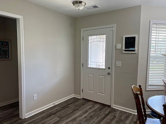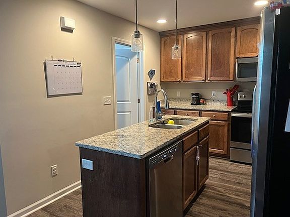 Beautiful 3BR/2BA home in Williamsburg! This open floor plan offers a beautiful cooks' kitchen with granite counters, custom cabinets, stainless appliances, a pull-out pantry and island! The dining room has an attractive bay window and opens into the big great room with trey ceiling. There is a covered porch on back! The split floor plan offers 2 comfortable bedrooms and a beautiful full bath on one side of the home. On the other side, across the great room is the master suite with a beautiful luxurious bathroom! Double vanity, a beautiful walk-in shower, private potty room and huge walk-in closet! Luxury vinyl plank flooring throughout the common areas & thick, rich carpet in bedrooms. This home comes with landscaping and sprinkler system in the front yard & a spacious 2 car garage.