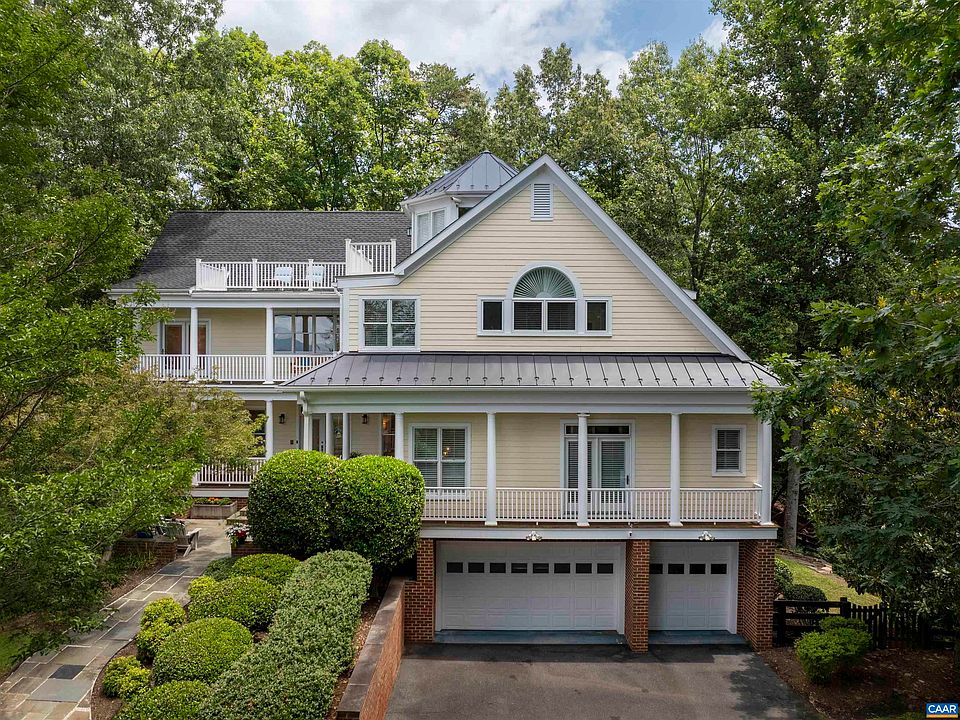 Set on a quiet cul-de-sac in Glenmore, this distinctive four-level home stands apart with its expansive mountain views, stylish updates, and exceptional outdoor living. Enjoy sunsets over Monticello from three levels of outdoor space—perfect for relaxing or entertaining. Thoughtful 2024 upgrades include a new roof with metal accents, updated second-level HVAC, refreshed upstairs hall bath, and a garage outlet ready for EV charging. The main level features generous gathering areas, a cozy library alcove, two fireplaces, and a well-appointed kitchen with cherry cabinetry, quartzite counters, Jenn-Air appliances, and a butler’s pantry. Upstairs you’ll find four bedrooms, including a spacious primary suite with a spa-like bath and access to one of the home’s view-filled decks. The top floor offers a light-filled sitting area and a private office with breathtaking vistas and its own secluded outdoor retreat. The terrace level adds a large rec room, bedroom, and full bath with walk-out access to a fenced yard. A rare blend of character and functionality—just a short golf cart ride to the Club at Glenmore. Current membership qualifies buyer for a 50% discounted initiation fee for club membership.
