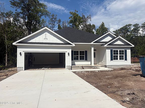 New Construction in Shallotte NC only 15 minutes from the beach! Step into luxury with the 2100 floorplan. This crafted home features wainscoting trim in the formal dining room at the entry of the home. The heart of the home has vaulted ceilings, a cozy fireplace, with an open concept living space. The kitchen has granite countertops, top-of-the-line stainless steel appliances, and ample cabinet space. The laundry room and finished 2-car garage add convenience and functionality. The master bedroom towards the rear of the home is complete with crown Molding. The master bathroom has a separate shower and bathtub, dual vanity, walk-in closet. The additional two bedrooms, located on the opposite side of the home, offer privacy and share a guest bathroom with granite countertops. Outside, relax on the back deck. This in the last model left in Rutledge. Get it it before its gone!