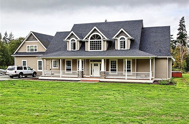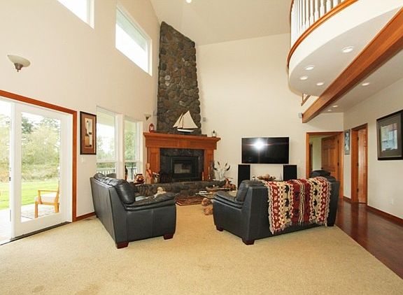 Happily Ever After! Stunning and fully loaded Oak Harbor craftsman. Huge and charming covered front porch opens to rich plank flooring, soaring ceilings and "wow" at every turn. Formal dining room with coved ceiling. Rustic great room with towering stone fireplace and exposed beams. Upper floor landing overlooks floor-to-ceiling windows. Chef's kitchen boasts stone and granite detail. Generous rooms, including master suite. 4 car garage with full ADU, great rental or office. Just under 3 acres.