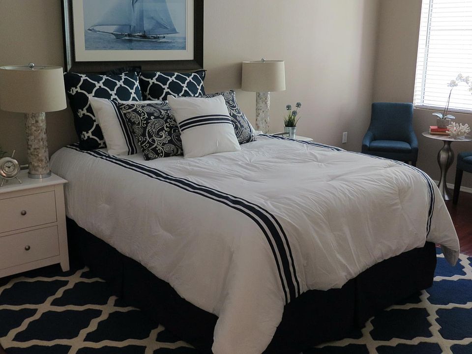 Unit Amenities: Unfurnished Largest 1-bedroom model at Watermarke with central A/C and private patio. Separate living room, dining room and den areas. Large bedroom with overhead fan and walk-in closet. Extra large bathroom with double basins. Modern kitchen with quartz counter top, twin sink, stainless double door refrigerator, dishwasher, microwave and a gas burning stove and oven. The unit also has a washer and dryer. Hardwood floors though out the unit with the bathroom floor tiled. One private parking space and additional guest parking available.