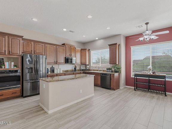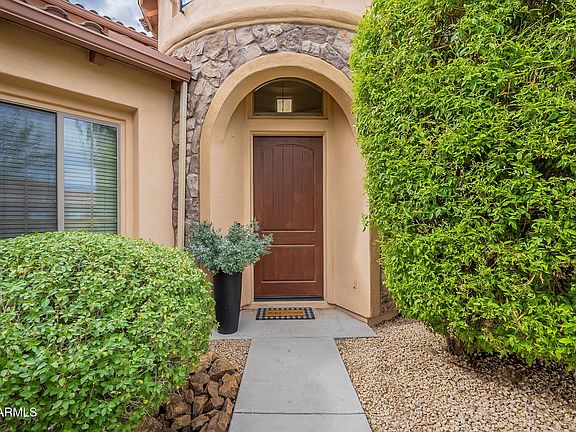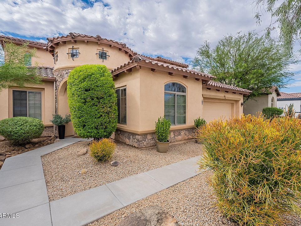 Welcome to your new home in the prestigious Sonoran Foothills! This exquisite Toll Brothers design features 4 beds, 3 baths, and 3-car tandem garage, elegantly laid out over 3,212 sqft. Enjoy a thoughtful open great room, first-floor bed & bath, den, and a unique atrium courtyard. The owner's suite includes a private balcony for serene views and gorgeous bathroom remodel. Interiors showcase neutral tones, complemented by new tile and carpet flooring. Recent upgrades include renovated bathrooms, newer AC, and a backyard oasis featuring a built-in trampoline, turf and a large paver patio. 3 car tandem garage equipped with EV charger. Embrace the vibrant community spirit with access to pool, splash pad, parks, and trails. Minutes from TSMC, dining and shopping.