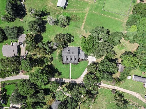 Custom-built 3–4 bedroom, 3 bath home set on just over an acre, offering privacy and functionality in Wisteria Farms. Inside, you’ll find an inviting living room with a gas fireplace, granite countertops in the kitchen, and generous dining space. The primary suite downstairs has new paint, new carpet, and a partially updated bath with Jacuzzi tub and walk-in shower. Another bedroom is downstairs, while upstairs features a third bedroom plus a flexible fourth that could serve as a bedroom, office, or game room. Storage is abundant with large closets throughout. Outside, enjoy a covered patio, hot tub (included, condition unknown), and sprawling yard. The property includes a two-stall carport and golf cart garage/storage with AC. Roof replaced in 2018. Propane (leased tank), septic system. Buyer to verify all measurements and obtain new survey. All appliances negotiable. A perfect opportunity for space, flexibility, and country living close to town.