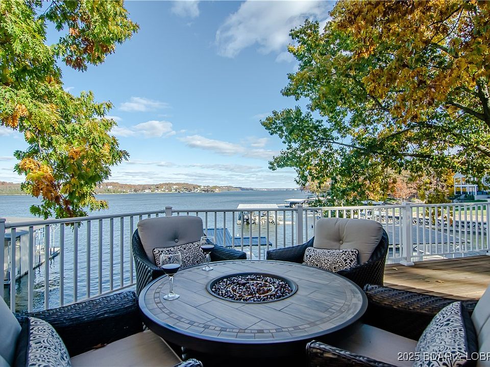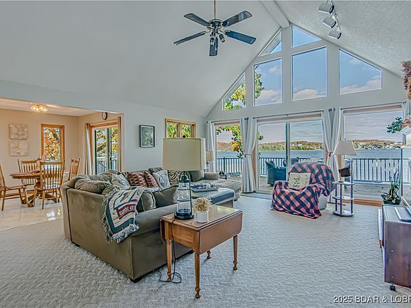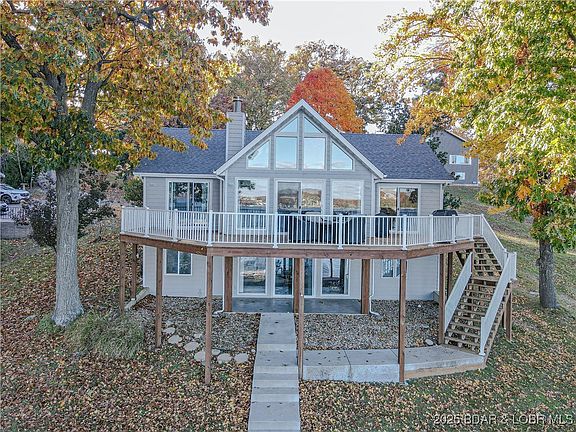 Location-Location-Location Welcome to your lakefront retreat at the mouth of the Gravois Arm with unobstructed, panoramic views to the Dam with amazing sunrises. The furnished 3 bedroom, 2.5 bath home offers 1,872 sq. ft. of bright, open living space with expansive lakeside windows that flood the interior with natural light. The main level features a master suite with walk-in closet and private ensuite, while the lower level includes two bedrooms, full bath, a walk out concrete patio, and a large utility space that could easily be converted to a fourth bedroom or game room. Step outside on the new concrete walkway a short distance to your private rough water concrete dock with wet steps, a K-9 ramp for pets, a 12'x32' boat slip, (with room for larger vessels), a large swim deck and 16' covered section, 4'x8' storage shed, and a fish cleaning station on deep, productive fishing water. There is ample room to build a garage or additional parking. Located in the upscale Pistol Point community within a short walking distance to Millstone Marina and Tap and Grill, this move in ready lake home with spectacular views, won't last long so schedule your showing today. Great rental Income!!
