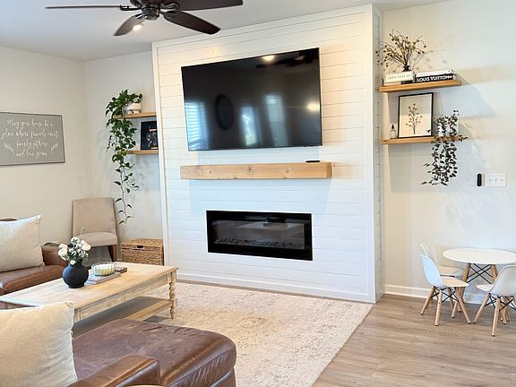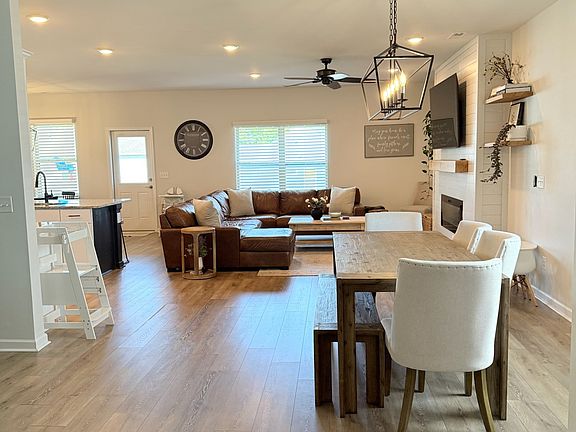 The Murray floorpan offers an over-sized gathering room, flex space, walk-in closets in all bedrooms, large loft, ample storage space, double vanity in the owner's bath, open kitchen with gorgeous granite countertops and stainless appliances as well as laminate hardwoods throughout the home. Custom upgrades include: shiplap electric fireplace with hardwood mantel, recent fresh paint, guest rooms with accent walls and decorative painting, ceiling fans installed throughout the home, new modern black fixtures, updated guest bathroom vanity, laundry room with cabinets and butcher block counters. Finished garage with fresh paint.