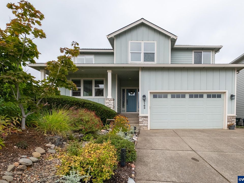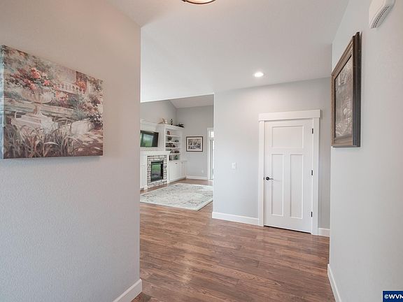 Welcome to this beautiful Comfort Built Home, nestled in a highly desirable West Salem community with mountain views. Built in 2018, this thoughtfully designed 4 bedroom 2.5 bath residence offers 2,004sq. ft. of living space with a sought-after primary suite on the main level. Inside, you'll find luxury vinyl plank flooring throughout the main living areas, wood stair treads, and tile in the bathrooms and utility room. The open kitchen features a subway tile backsplash, professional 6-burner gas range with hood vent, and reverse osmosis water filtration at the sink. The living room is enhanced by custom built in cabinetry, creating both beauty and functionality. This home is brimming with upgrades: a while-house UV water filtration system, 50-amp circuit for EV charging, insulated garage with internet-enabled door opener, smart thermostat, and fully cased vinyl windows throughout. Outdoors, the yard is an oasis- professionally landscaped with tiered design for privacy and tranquility. An internet-aware irrigation system with drip zones keeps it lush, while a natural gas lies is ready for backyard barbecues. A dedicated pad with 40 amp circuit awaits your hot tub, and an 8 x 12 workshop with power and vinyl plank flooring provides space for projects or hobbies. Enjoy the covered patio. The thoughtful balance of beauty and convenience. Located close to shopping, restaurants, and everything West Salem has to offer, this home truly blends comfort, quality and lifestyle.