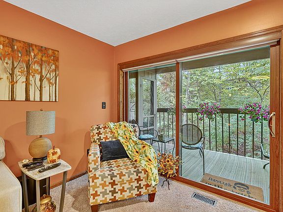 Discover the charm and character of this distinctive condo, originally designed to evoke the feel of an Aspen ski lodge. Tucked into a scenic wooded ravine, this first-floor, one-story unit offers both privacy and convenience complete with a screened-in porch and outdoor balcony, perfect for relaxing and enjoying the tranquil views.