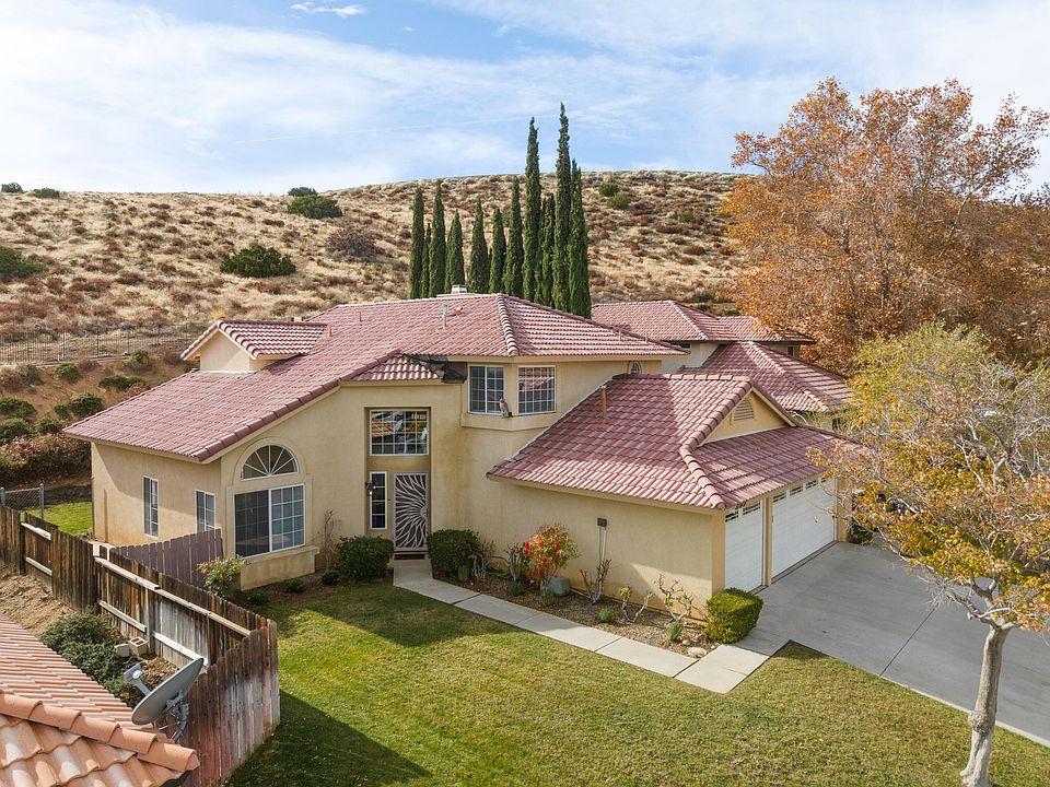 Retreat to this West Palmdale home where the foothills become your backdrop and privacy is your companion. Your private sanctuary awaits; come home to tranquility. Escape to the primary bedroom balcony, your personal vantage point overlooking the majestic mountains. Whether it's morning coffee or stargazing at night, this balcony offers a picturesque retreat for moments of reflection and relaxation. The primary shower has been completely redone and is simply fabulous! This 4 bedroom home features a bedroom and full bathroom downstairs with 3 spacious bedrooms up. And, for the handy person / mechanic, the garage features compressed air lines (compressor not included) and extra electrical. There's even overhead storage. RV access is possible on this lot that is located at the edge of the tract with no neighbors behind you. This home is ready for you to call your own!