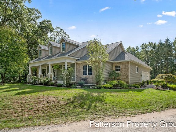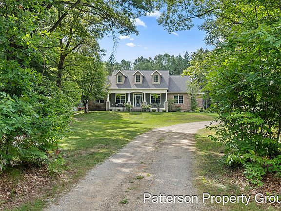 Welcome to this beautiful custom home in Jamestown Reserve featuring four bedrooms and three full bathrooms with over 2,541 square feet of living space! An unfinished walk out basement and bonus room above the garage offer endless possibilities. Recent updates include a new roof and gutters in 2023 along with a furnace and central air in 2021. Inside you'll find a formal dining room and pantry, while outside living shines with a huge patio, sparkling pool and relaxing hot tub right off the slider. The impressive 1344 square foot pole barn offers versatility for hobbies, storage, or gatherings, complete with a finished concrete patio designed for evenings by the fire pit and effortless entertaining. Nestled on five acres, this property blends comfort, function and luxury with plenty of room to grow, entertain and unwind.