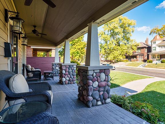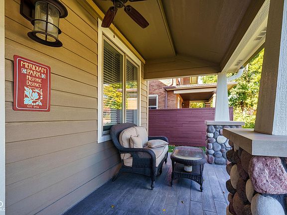 Experience the perfect blend of historic charm and modern sophistication in this 2017-built home, ideally located in the heart of the Meridian Park Historic District. Designed with thoughtful craftsmanship and attention to detail, this 5-bedroom, 4-bath residence offers open, light-filled living spaces and an entertainer's flow throughout. A fully covered front porch with stamped concrete welcomes you into a warm interior featuring hardwood floors, wainscoting, crown molding, custom ceilings, and a cohesive open floor plan with views straight through the home. The expansive kitchen was designed for entertaining with high-end finishes, custom cabinetry, and seamless connection to the family room and outdoor living space. A full wall of French glass doors opens to a fully fenced backyard oasis, creating a true indoor/outdoor lifestyle and inviting you to enjoy the rear patio and manicured landscaping in every season. The lower level is a world of its own, complete with a full kitchen/bar, theatre system, and guest or in-law suite offering flexible living arrangements. The spacious primary suite features a private balcony, custom walk-in closet, sitting area, and a stunning bath with walk-in rain shower, luxury tile, and fixtures. Two additional balconies, a cozy fireplace, and curated design details bring depth and character throughout. A heated two-car garage and carriage house add versatility-perfect for guests, a home office, or studio-equipped with the Audio Solutions sound system extending throughout the main home and carriage house. Every finish, from stone tile to shiplap detail, reflects quality and craftsmanship. Ideally situated with quick access to downtown Indianapolis, The Children's Museum, Newfields, RH, and Northside Indy, this home offers connection, character, and comfort in one of the city's most admired historic districts. Formerly the property of Indianapolis legend Frank Beckwith, it continues a tradition of gracious living in Meridian Park.