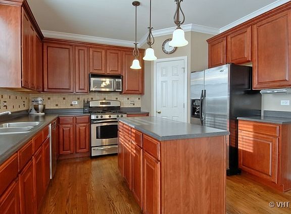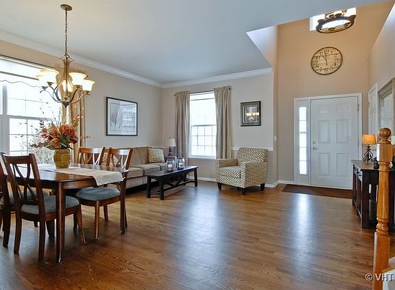 As you enter this beautiful 4 bed 2.1 bath home you are greeted by gleaming hardwood floors and 9 ft ceilings with crown molding throughout. The open concept dining and living room make it perfect for entertaining. The kitchen boasts stainless steel appliances, upgraded oak cabinets, stone backsplash, and large island and flows seamlessly into the family room. Step out your sliding glass door onto your patio and enjoy your beautiful backyard backing up to a bike path. Den and first floor laundry make up the rest of your main floor. Walk up your newly refinished stairs where you will find a large master bedroom featuring soaring ceilings, a generous size walk-in closet, and private bath with separate tub and shower and dual sinks. Full basement just waiting for your finishing touches. Yorkville schools and just minutes from I-88.